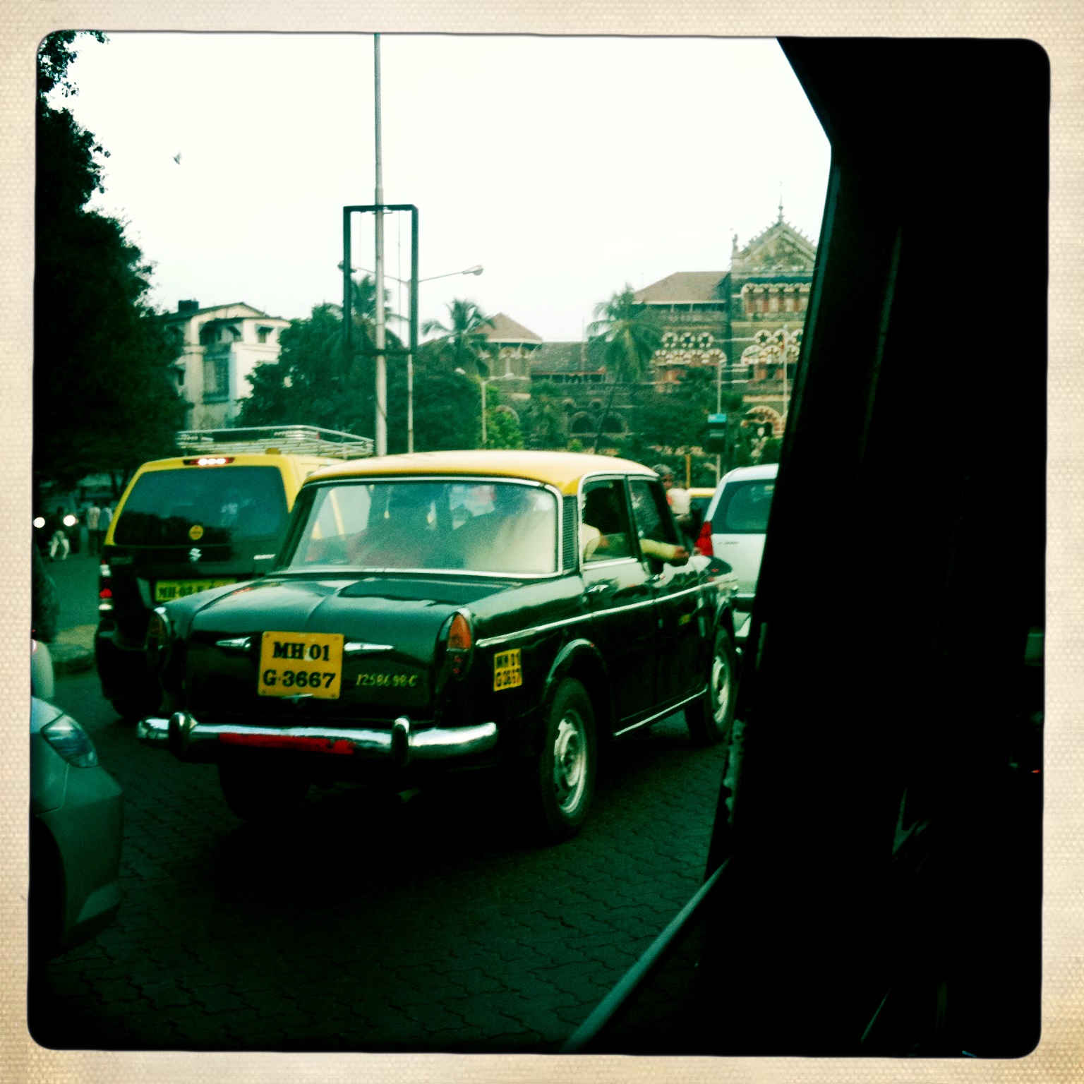 Mumbai (Bombay), 21h, 21 novembre 2011: Arrivés de soir, après 16h de transport dont une escale de 9h aux Emirats Arabes Unis, nous sommes montés dans un typique taxi noir et jaune des années 50 au volant semi-fonctionnel. Nous avons traversé la ville vers Colaba (sud) et quoi qu'il faisait nuit, nous avons pu voir... Au début, j'ai dit à André: "Ça ressemble à la médina de Marrakech": même densité de population, même fouilli, même style. Après 15 minutes de trajet, toujours la "médina", voilà ce qui est surprenant.