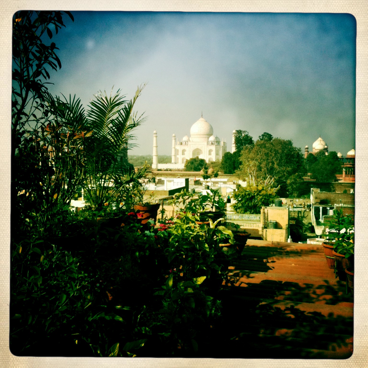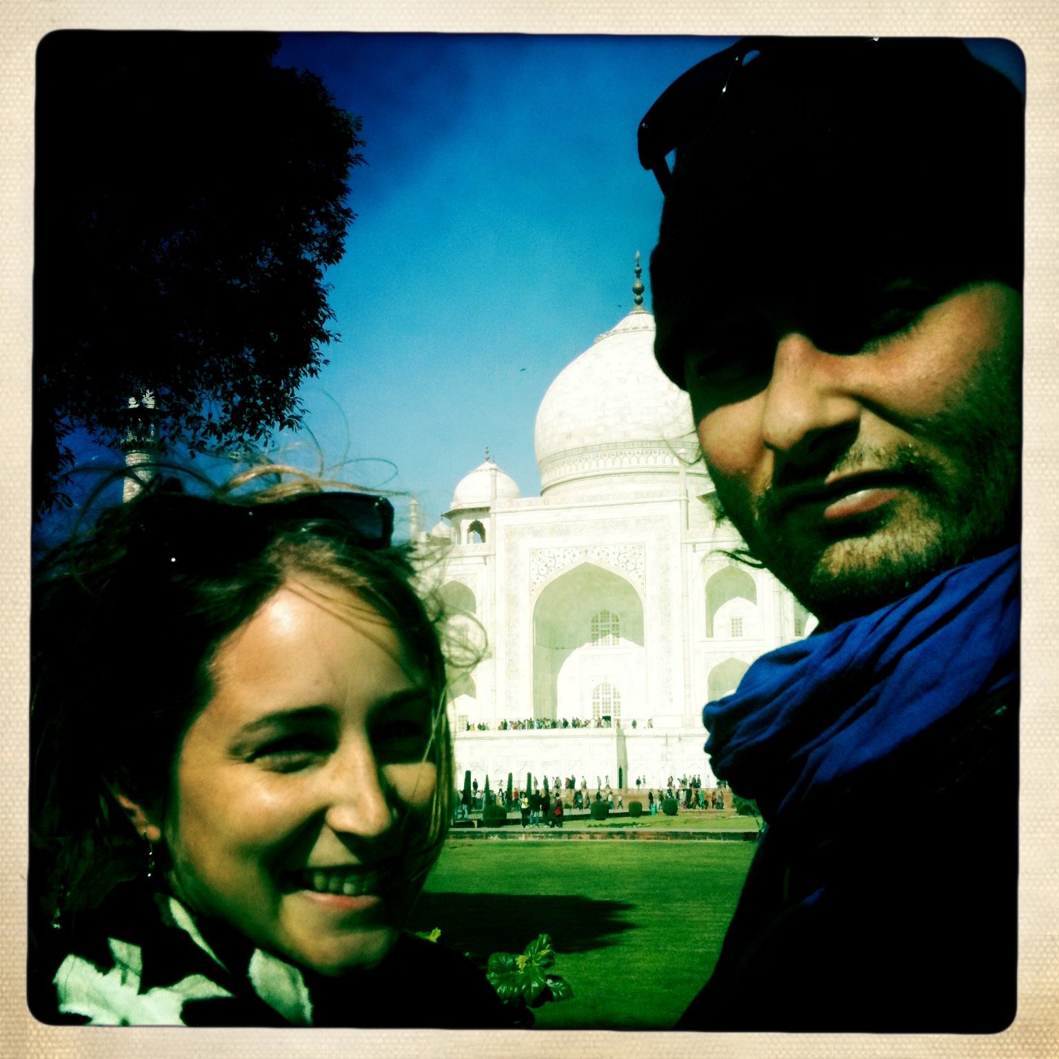 Quelques jours plus tard, avec un manque flagrant d'énergie, nous avons tout de même décidé de partir pour Agra, à la visite du célèbre Taj Mahal. Nous sommes arrivés tard le soir, il faisait froid et le restaurant de l'hotel était dehors! Nous avons donc enfilé nos tuques (oui oui), nos polars et nos impers pour manger un "Dal Fry" sauce aux lentilles avec riz avant d'aller se coucher. Malheureusement, nous avons eu droit seulement qu'à une couverture de lit simple pour deux et c'est sans chaufferette que nous avons fait notre camping d'hiver, tuque comprise, dans notre chambre "pas cher". Cette fois-ci, j'ai été malade "par les deux bouttes" et je ne l'ai pas trouvé drôle!