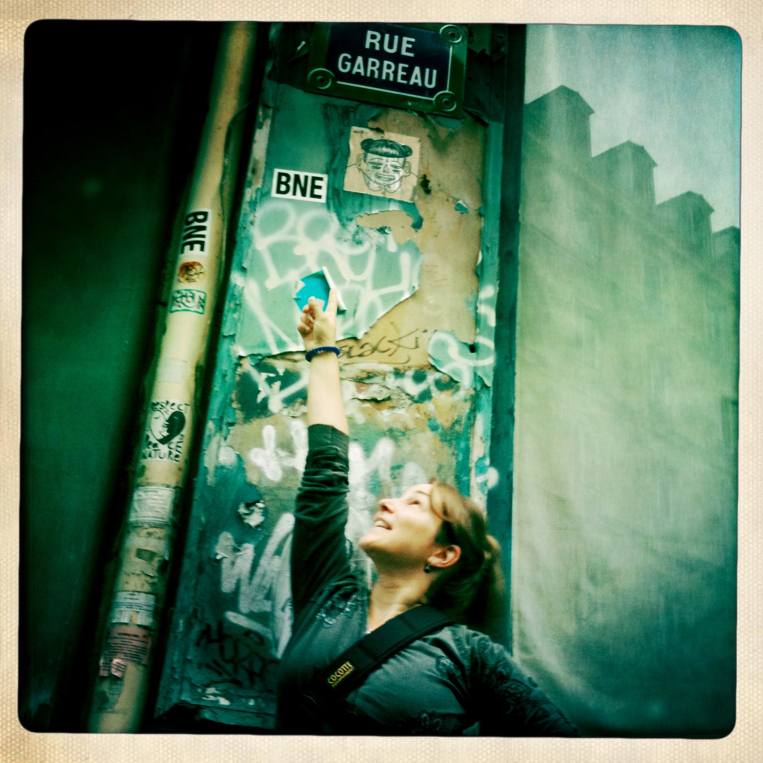 Cette photographie à été prise dans le quartier de la butte Montmartre à Paris, la première journée de notre voyage. L'enseigne nous à attirée parce que le chalet familial de Marie-Claude est en bordure du lac Garreau.  La photographie est un peu floue et la qualité n'est pas très bonne, mais la composition est intéressante et les couleurs résultantes de la combinaison iPhone et Hipstamatic donne une ambiance particulière à la photo. À ce moment, nous étions plutôt euphoriques et ne réalisions pas encore ce qui nous arrivait.