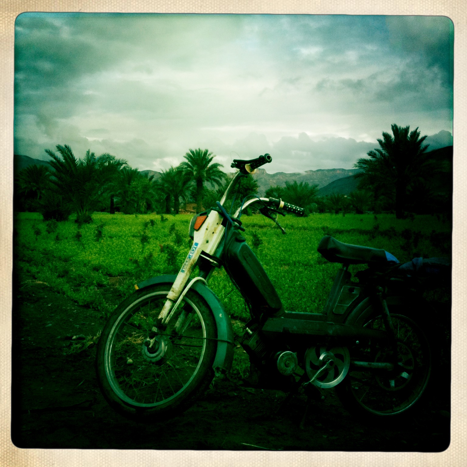 Toujours durant notre tour, notre guide s'arrête pour nous montrer un champ de henné. Moi c'est la mobylette rétro dans le champ qui m'accroche... Il n'y a pas grand chose à dire. J'aime les couleurs et la composition.