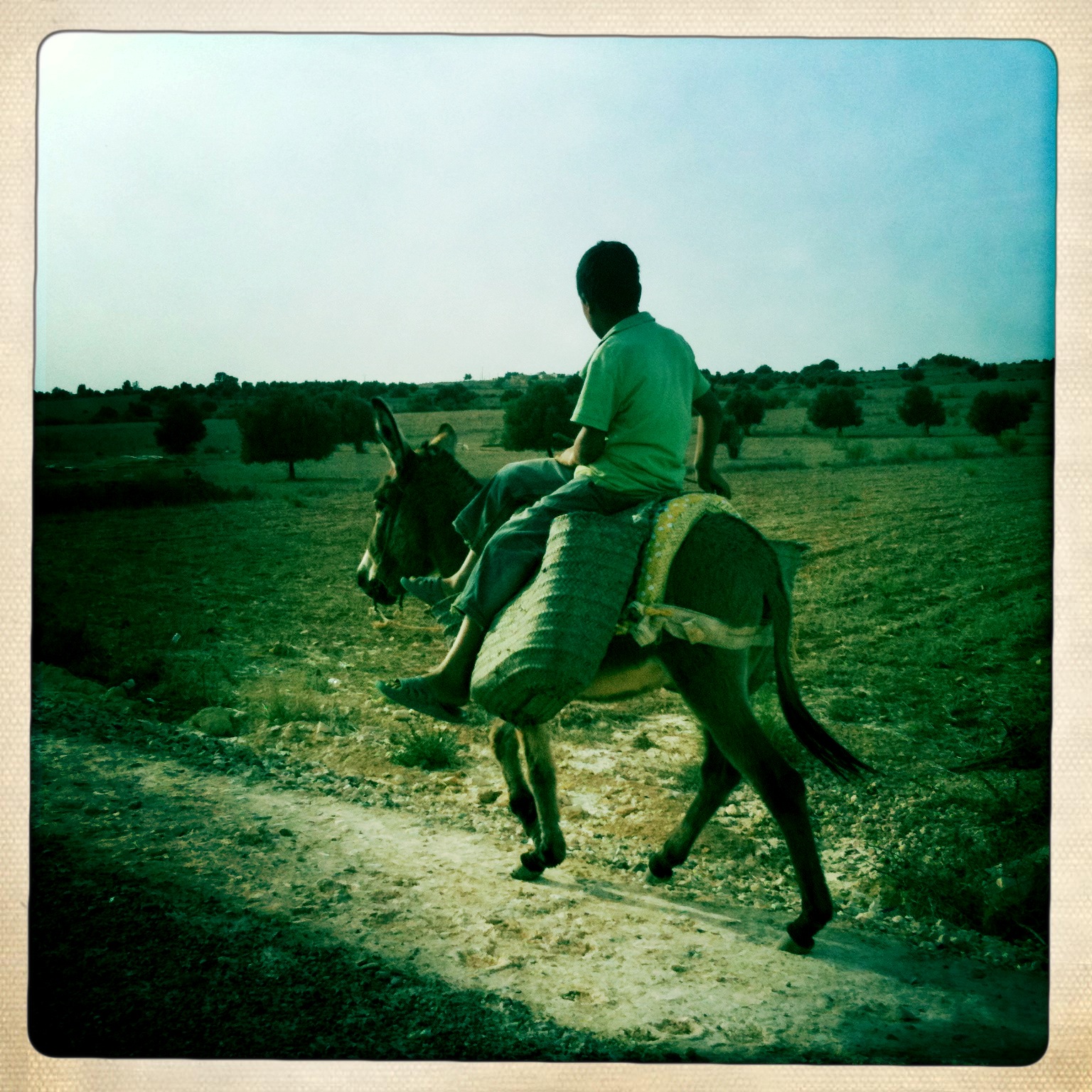 Vous ne pouvez pas non plus revenir du Maroc sans avoir vu des centaines d'ânes accomplir mille et une tâches au Maroc. Ces belles bêtes sont partout et sont le moyen de transport numéro un en dehors des grands centres. J'ai bien essayé mais je n'ai pas réussi a obtenir des photos satisfaisantes d'ânes. Peut-être sur de la pellicule pas encore développée. Mais celle-ci, prise de la voiture, n'est pas si mal et représente bien une scène typique de la campagne marocaine.