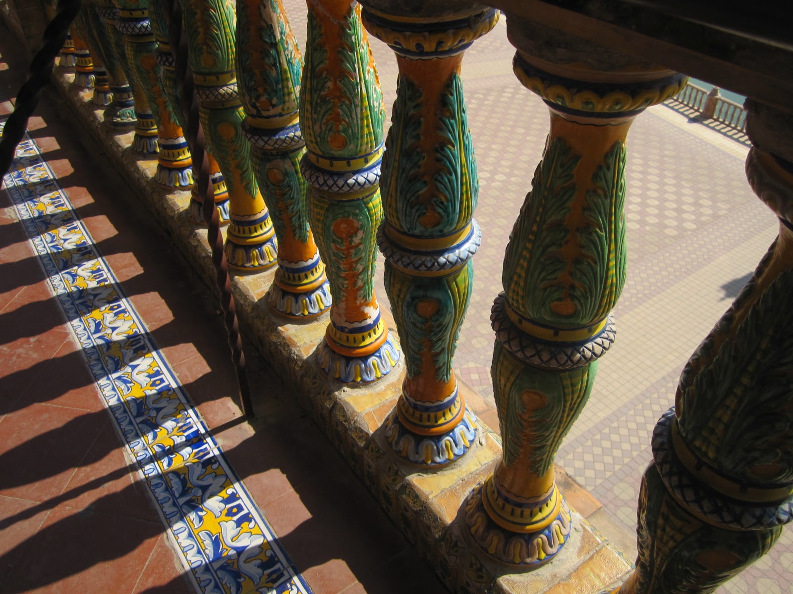 La Plaza de España à été conçue pour l'Exposition ibéro-américainde de 1929 à Séville. Malgré son côté ville fantôme, l'endroit est plutôt majestueux. Cette photographie avec une belle composition et des couleurs explosives montrent bien le soucis du détail qu'ont eut l'architecte et les artisans.