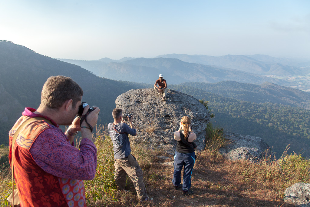 C'est notre ami Andreas Minge, un allemand installé en Thaïlande depuis près de 20 ans, qui nous a organisé la sortie. Vous pouvez aller voir le site internet de ses expéditions photographiques en Thaïlande. Ses photos, comme toujours, sont spectaculaires mais vous devrez maîtriser l'allemand pour comprendre le texte. Nous avons passé un merveilleux deux jours à grimper (l'ascension était ardue), photographier et redescendre. Nous avons passé la nuit au sommet, en camping rudimentaire dans un espace organisé par le parc. J'étais surpris de voir des thaïlandais en camping, je ne croyais pas ça possible mais oui, l'endroit était plein de jeunes thaïs, guitare à la main, comme chez nous l'été!