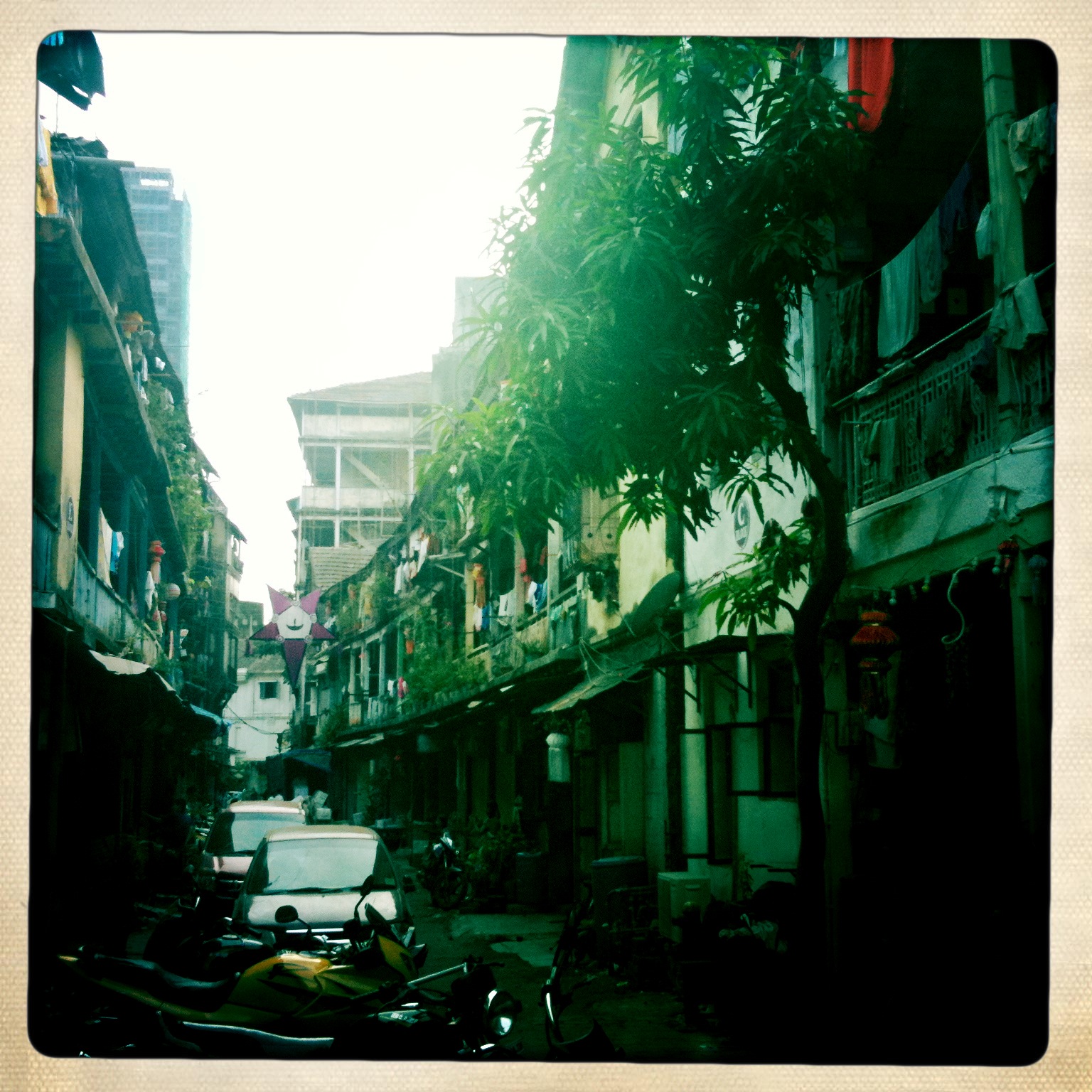 La photo n'est pas très bonne mais le moment était magique. Nous marchions en direction de la plage de Mumbai et je me souvient avoir lu qu'il existe un vieux quartier catholique avec une architecture particulière dans le coin. Nous cherchons l'endroit et atterrissons dans cette ruelle. Le voici, le fameux quartier. Ce n'est finalement que deux ou trois rues étroites mais les maisons, toutes de bois, arborent de grands balcons qui rappellent ceux des ruelles montréalaises. Les enfants jouent dans la rue, nous lancent des sourires en pratiquant leur anglais et Marie-Claude a même droit à une petite leçon de crochet d'une vieille dame assise sur le plancher de son appartement. C'est impossible de vous transmette l'émotion du moment, mais notre vision de Mumbai a complètement changée à partir de ce point.