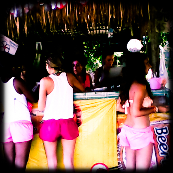 Le soleil se couche et ils reviennent à la vie...Tous se dirigent sur "L'île". La rue principale est donc peuplée de jeunes occidentaux nous invitant à traverser sur L'île, par les petits ponts de bambou, pour avoir droit à notre "free bucket". On se rassemble dans trois bars différents mais du pareil au même, où l'on peut jouer à des "drinking games", danser au son d'un DJ, ou flâner autour d'un feu. Tout ça bien sûr avec son "bucket": un seau rempli d'alcool, le plus populaire étant; Whisky + Coke + RedBull, et de 4 pailles qui ne sont très souvent utilisées que par une personne (à 3$ le seau!). Un party qui s'étend et s'entend jusqu'au petites heures du matin, il faut donc bien choisir l'emplacement de son "guest house" selon... son âge, disons-le!