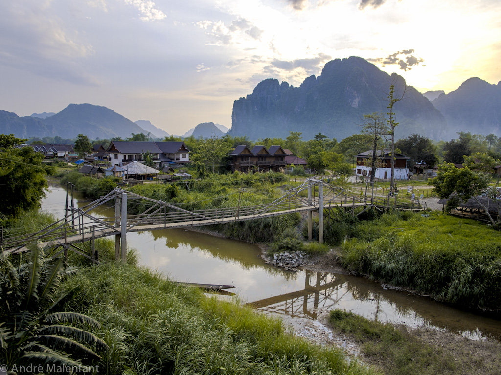 Que le "Spring Break" de la Floride se rhabille, il n'y a rien qui se compare à Vang Vieng! En posant les pieds dans la petite ville qui relie Vientiane à Luang Prabang, au Laos, j'ai immédiatement senti quelques cheveux gris essayer de se dissimuler sous mon chignon. :) Pour cause, la ville est majoritairement peuplée de "farangs" dans la très jeune vingtaine et tout le tourisme est bien centré sur cette clientèle...