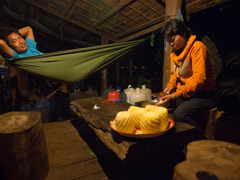 À Tad Lo, un minuscule village en bordure de la rivière et des cascades nous avons relaxé dans les hamacs de notre petit chalet privé (à moins de 10$ par jour) avec grand balcon sur la rizière, visités les environs avec nos nouveaux amis français pris au piège par le charme de l'endroit et pris nos repas du soir avec eux et la petite famille qui gère l'établissement. C'est là que nous avons mangé la meilleur cuisine simple et chaleureuse du Laos, en plein air, où tout le monde mettait la main à la pâte pour préparer les légumes et griller la viande sur le feu. Encore un endroit duquel il est difficile de partir.