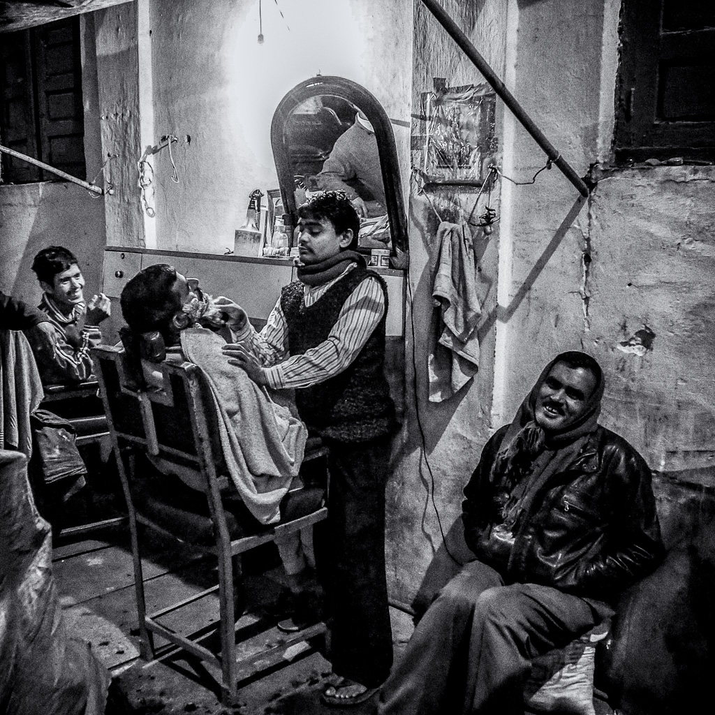 | Barbier de rue à Delhi, Inde. André n'aurais pas pu capturer ce ce moment sans le sourire de Marie-Claude |